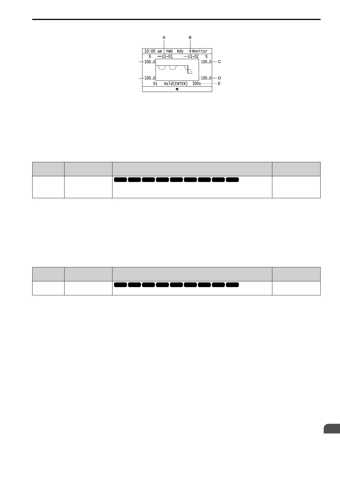 Shows the monitor item selected in o1-01 [User Monitor Selection].