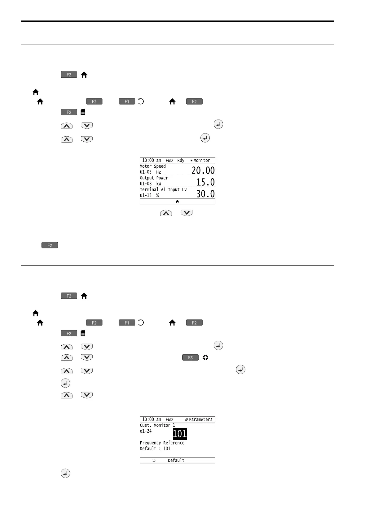 show monitor U1-01 [Frequency Reference], set it to "101" as shown in this figure.