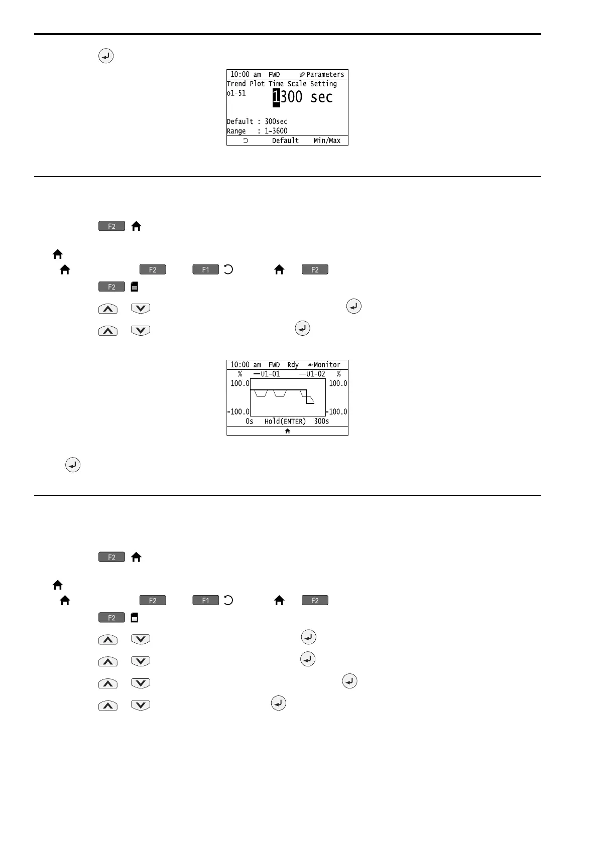 Push (Hold) to switch between Pause and Restart for the monitor display. The “Hold (ENTER)” message flashes while monitoring