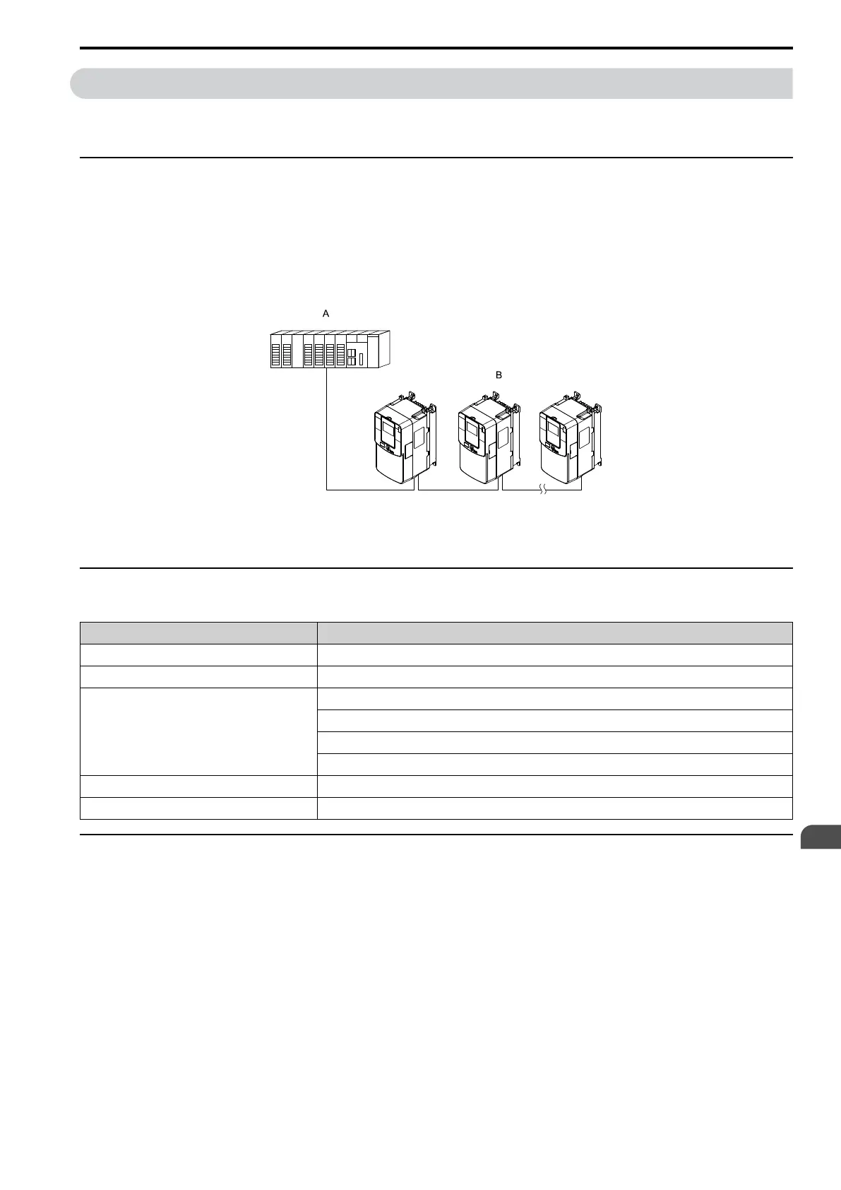 The Modbus communication uses one master (PLC) and a maximum of 31 slave drives. Serial communications