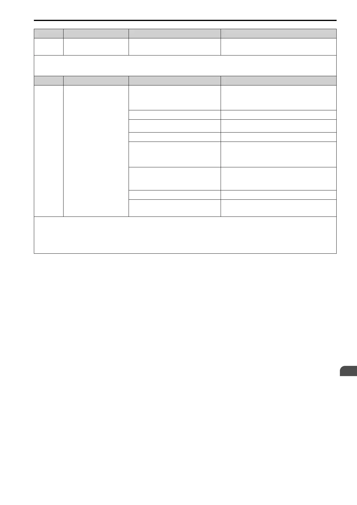 If the drive detects this error, the terminal assigned to H2-01, H2-02, and H2-03 = 4 [2NO-2CM Func Selection, 3NO-3CM Func Selection, and 4NO-4CM Funct Selection =