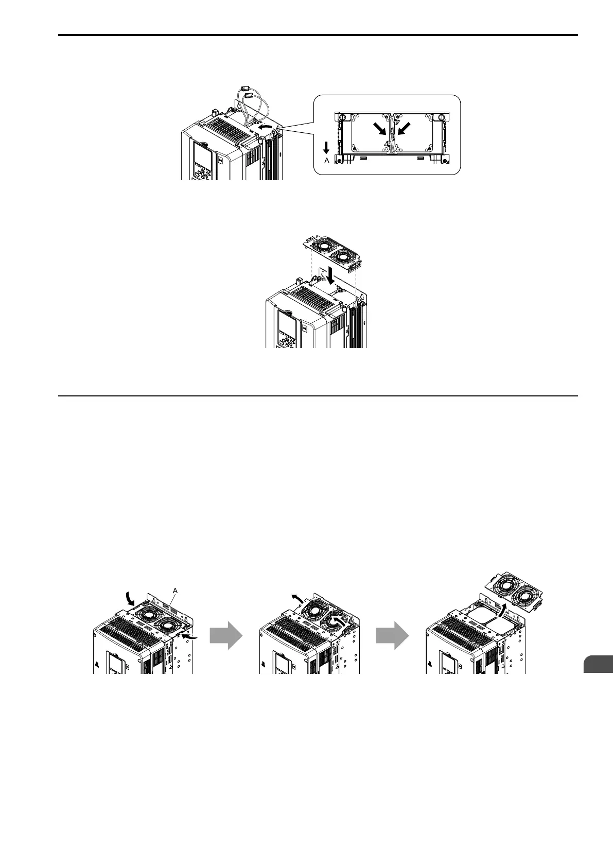 5. Energize the drive and set o4-03 = 0 [Fan.Oper Setting = 0 h] to reset the cooling fan operation time.
