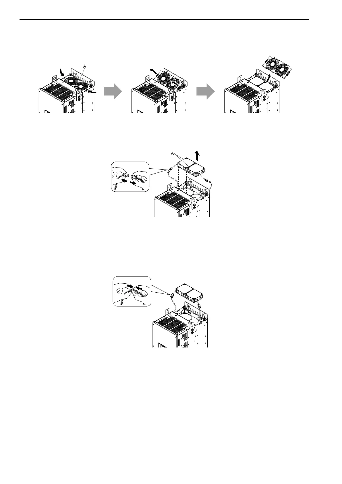 2. Pull the cooling fan straight up from the drive. Disconnect the power supply connector and remove the fan