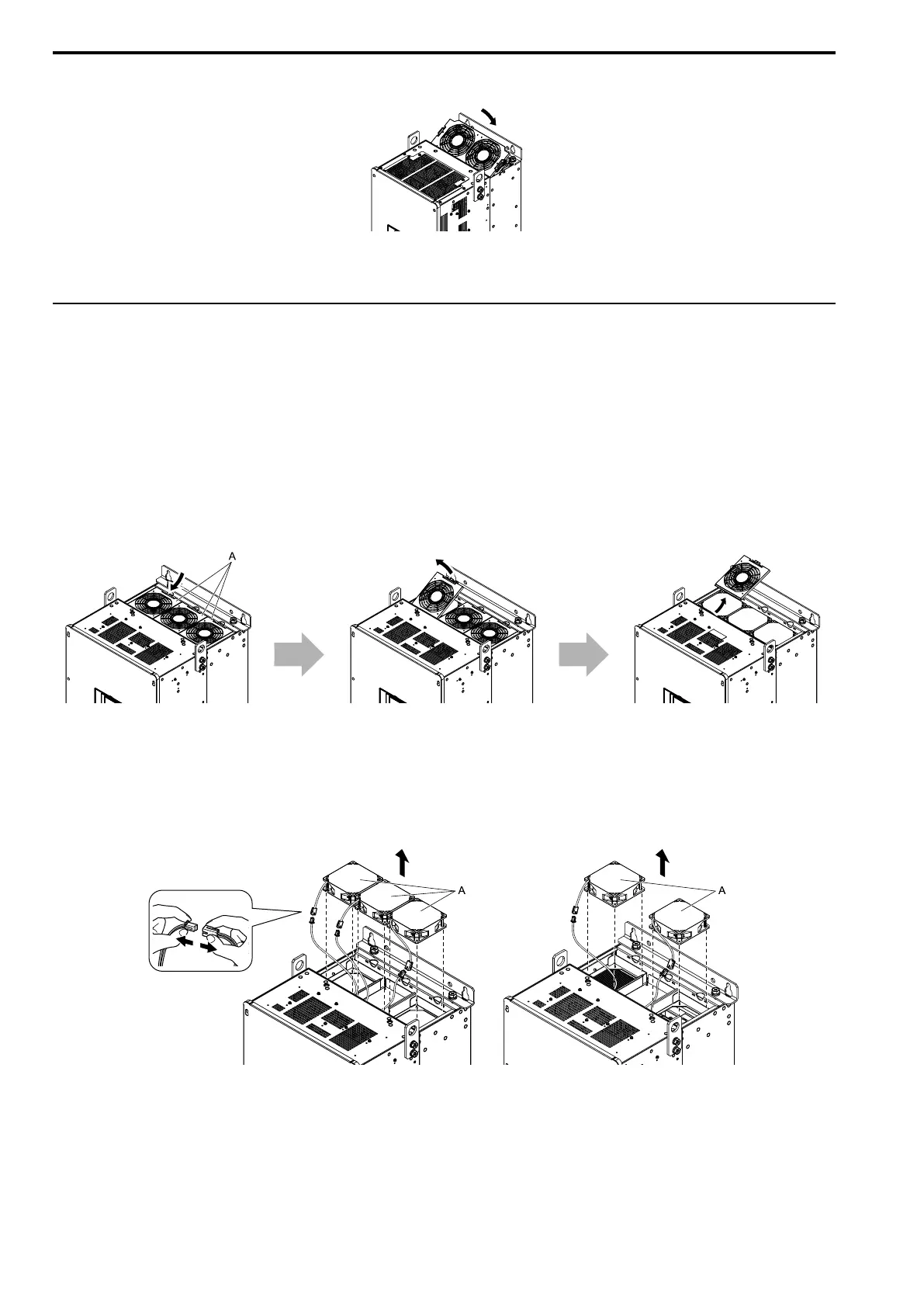 1. To remove the fan finger guards from the drive, push the hook on the back side of each guard and pull up.
