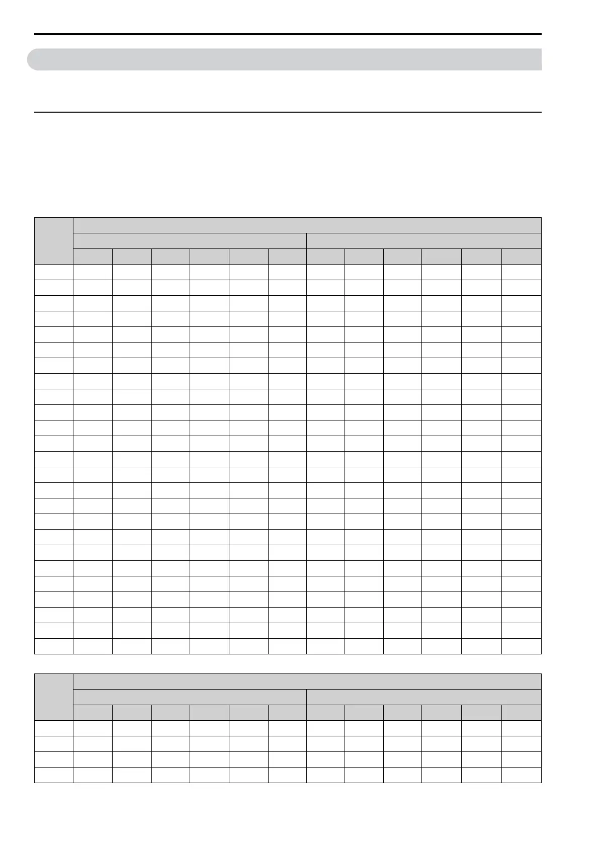 The following tables show how the drive rated output current changes when C1-02 [Decel Time 1] value changes.