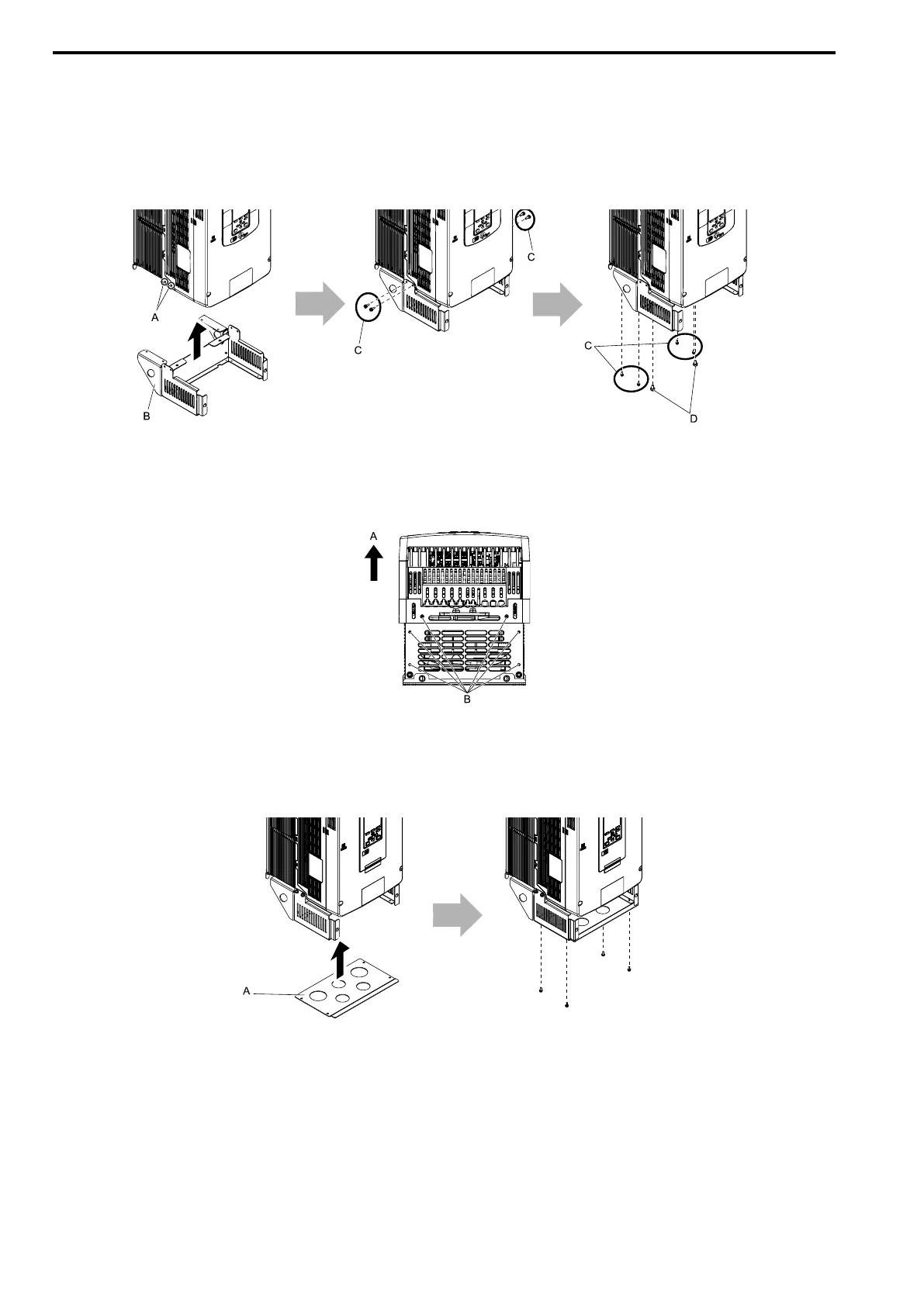 1. Align the screw holes on conduit bracket 1 with the screw holes on the drive and push the bracket into
