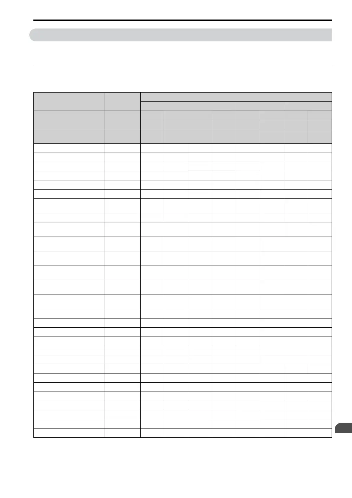 The values for the parameters in these tables depend on the values for parameters o2-04 [Drive KVA Selection]