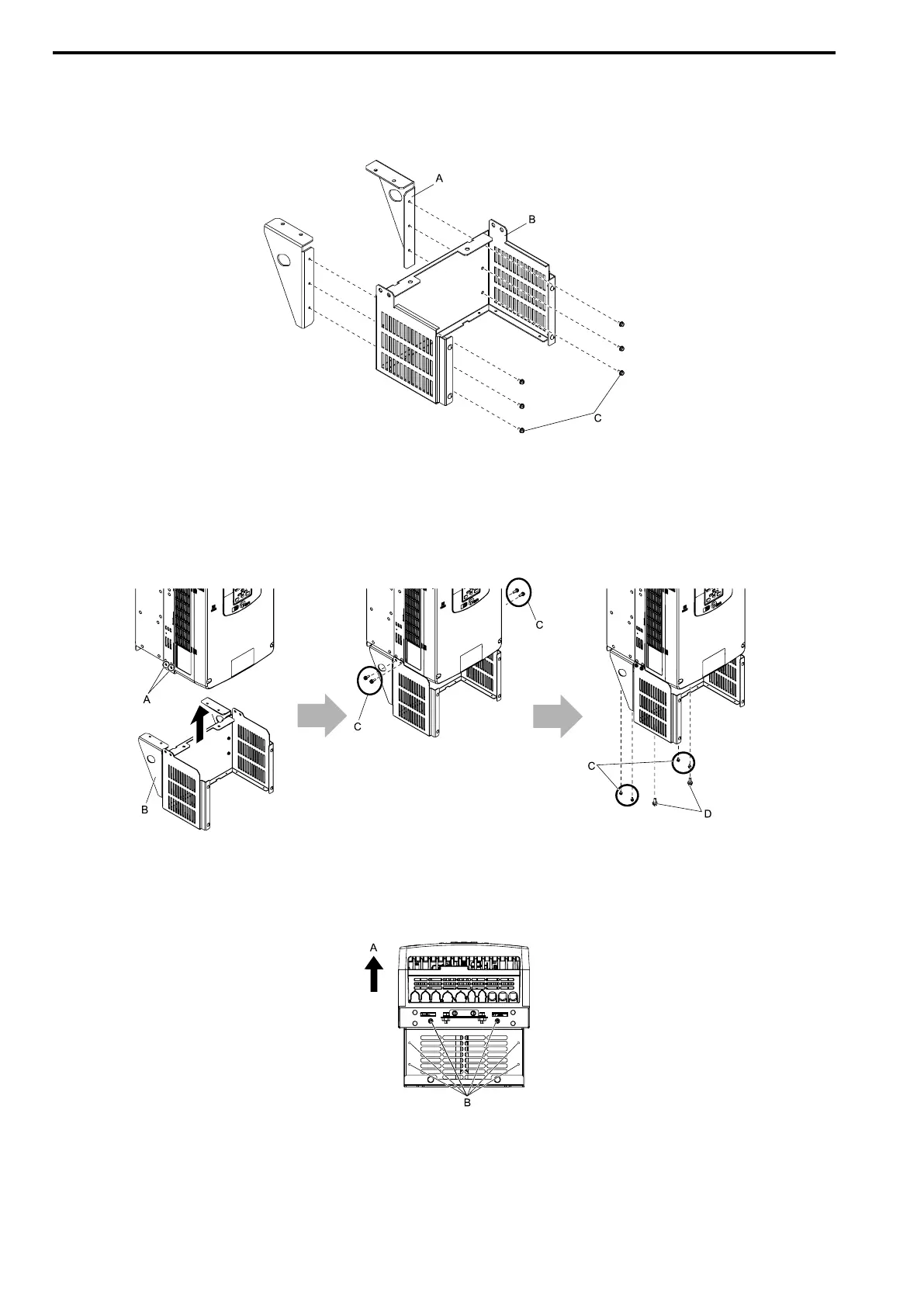 2. Align the screw holes on conduit bracket 1 with the screw holes on the drive.