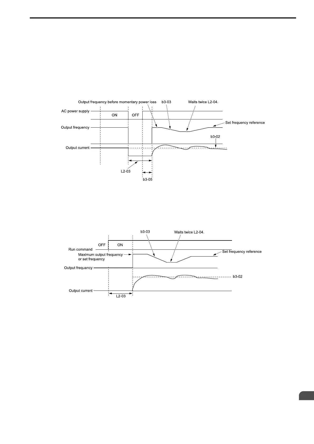 set in L2-03 is expired. If the value set in L2-03 < b3-05, the drive will use the wait time set in b3-05.