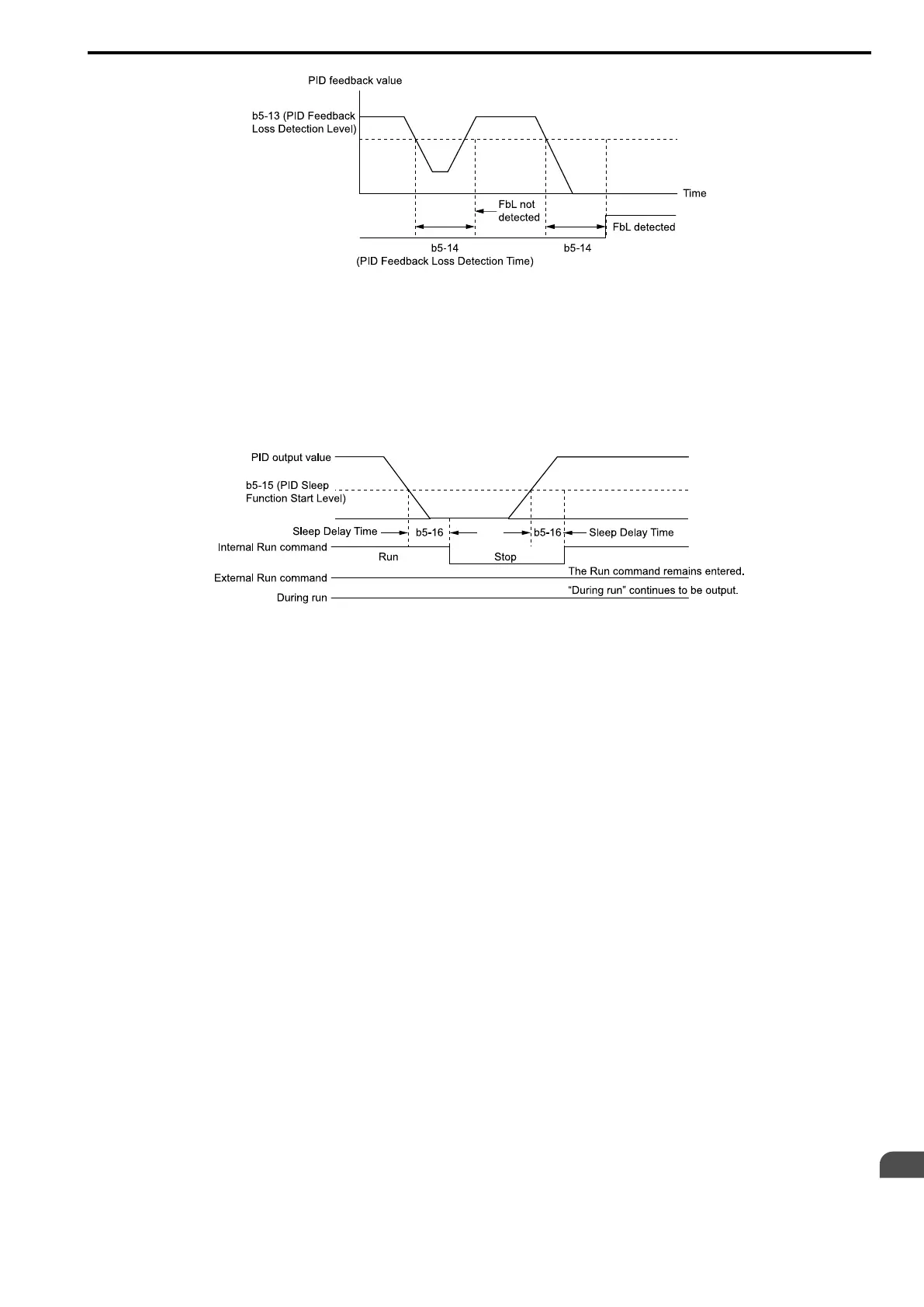 PID sleep stops drive operation when the PID output or the frequency reference is less than b5-15 [Sleep Start