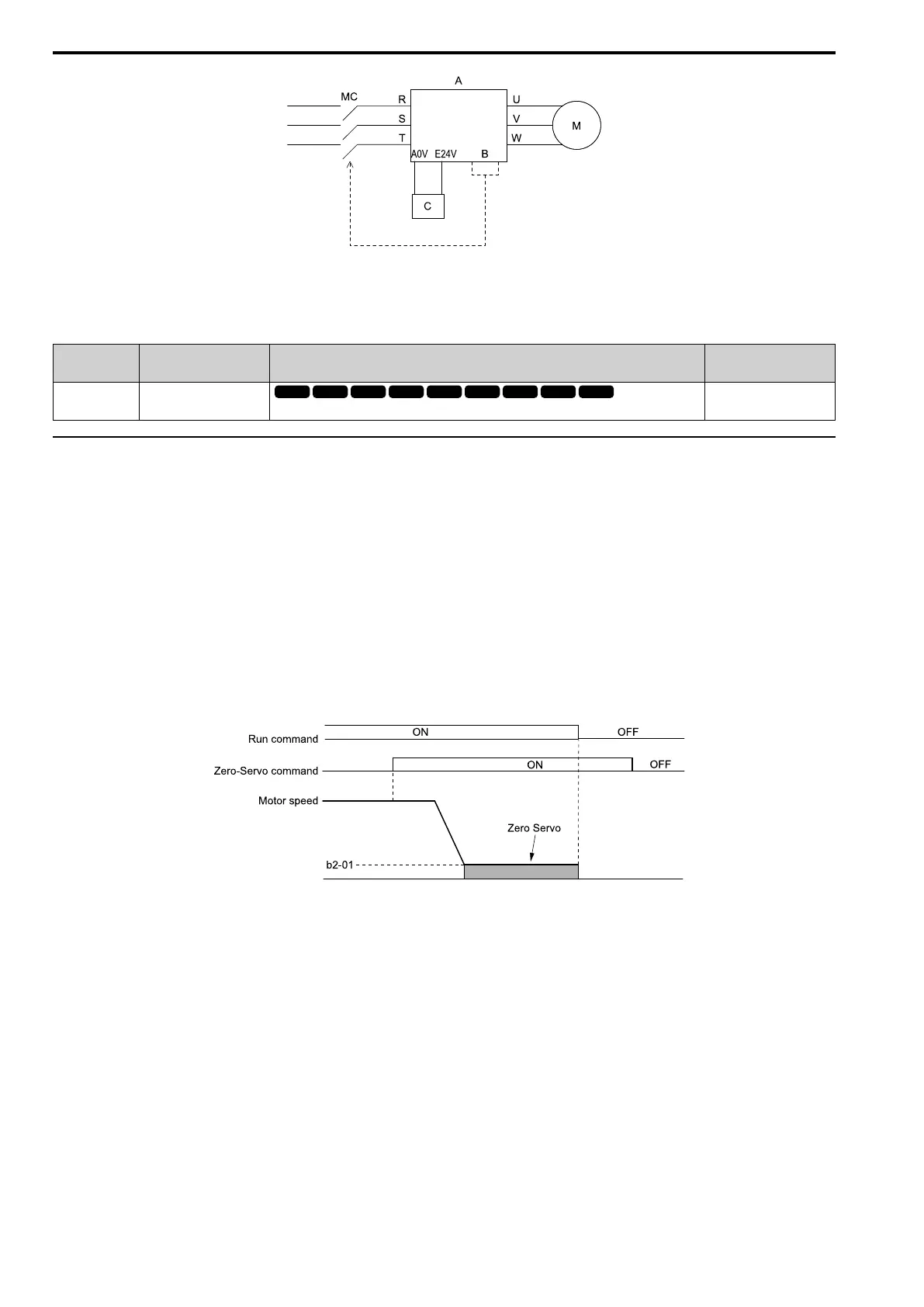 terminal set for Zero Servo [H1-xx = 31] activates and the motor speed decreases to less than the value set in b2-