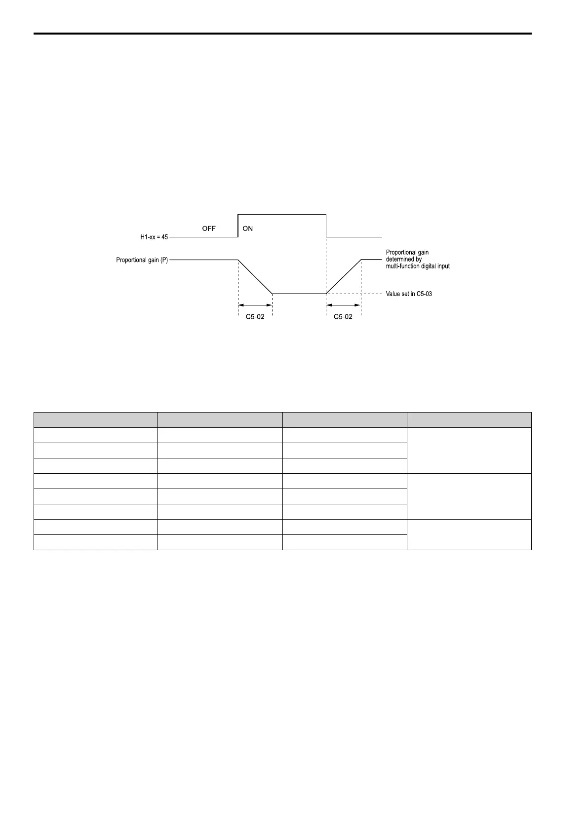 with C5-01 and C5-03. When the configured input terminal is deactivated, the proportional gain set for C5-01 is