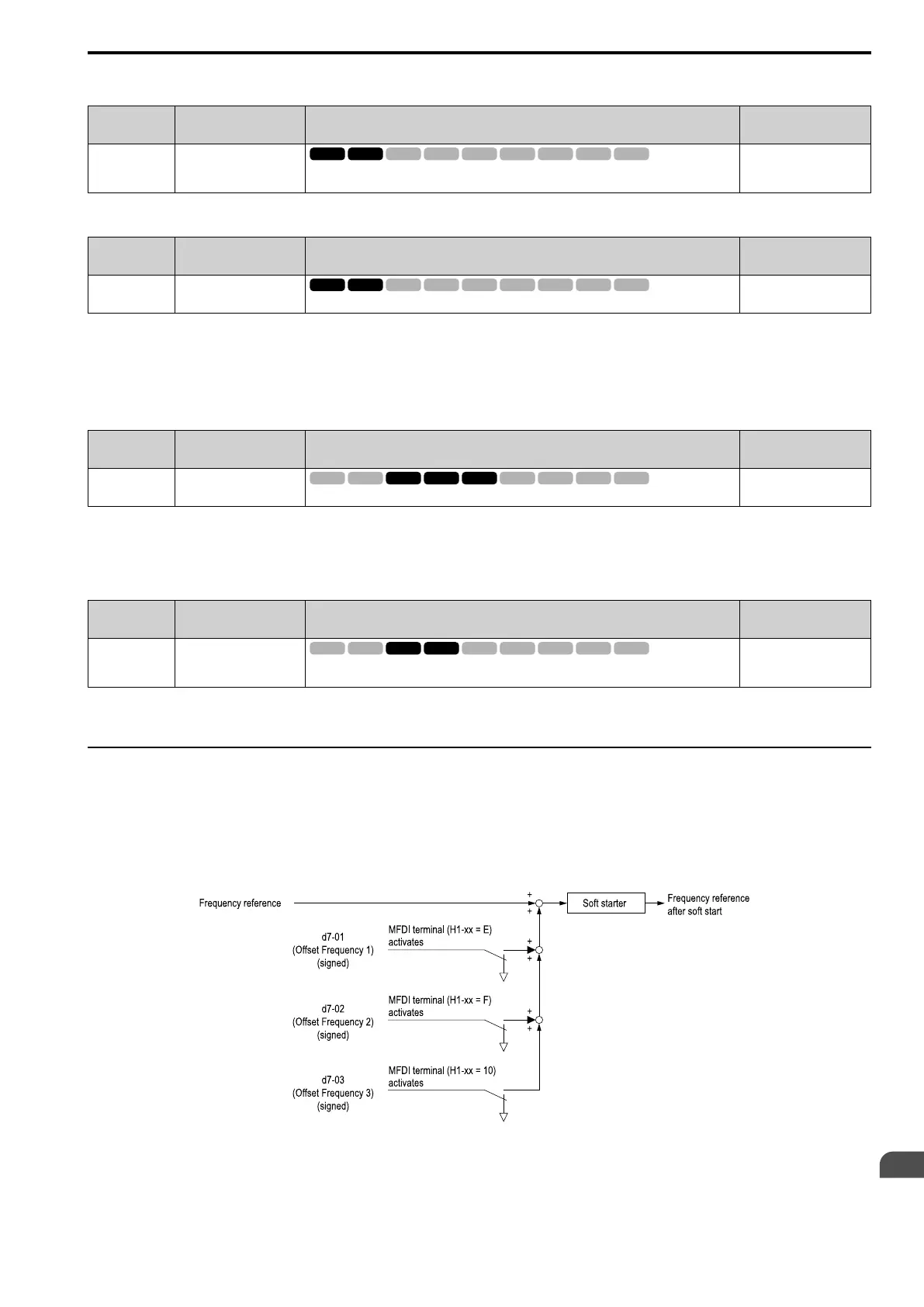 frequency reference and correct the speed. The drive uses the terminal set in H1-xx = E, F, 10 [DI Function Select