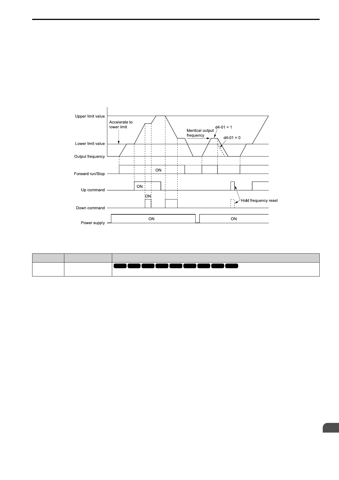 frequency reference is set in d2-02. The time chart when FRef Hold Selection [d4-01] is enabled and disabled is