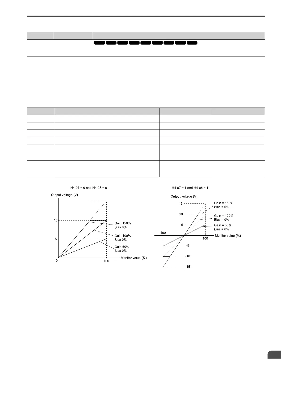 H4 parameters set the drive analog monitors. These parameters select monitor parameters, adjust gain and bias,