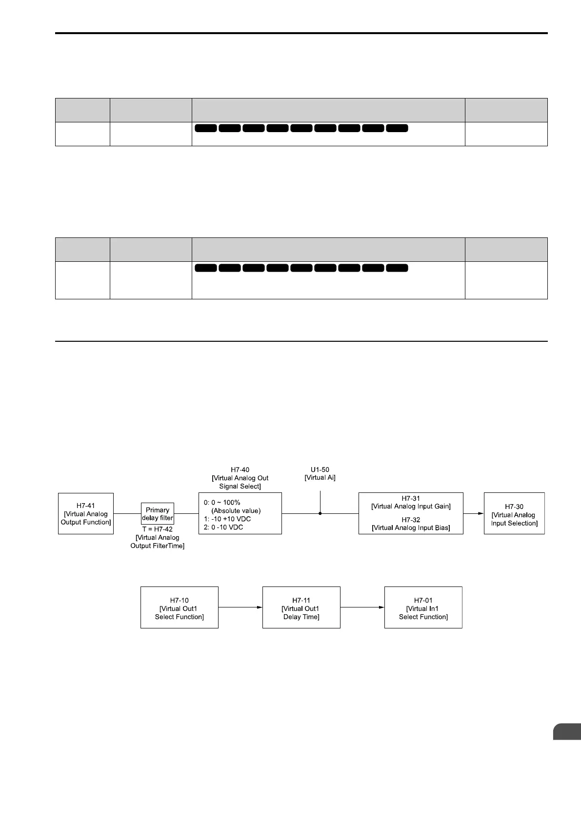 Refer to H4-xx "AO Setting Values" for more information on the virtual analog output setting values.