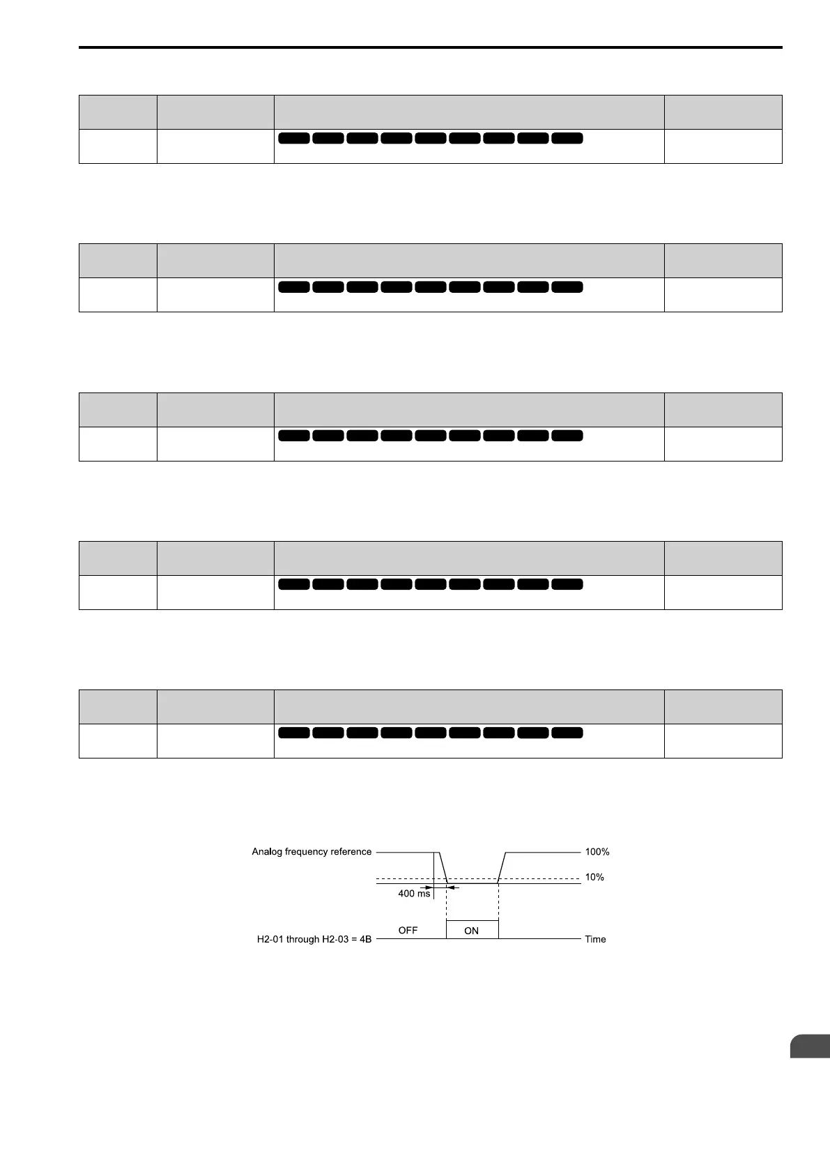 Sets the width to detect speed agree or motor speed when H2-01 to H2-03 = F, 10, 13, 14 [DO Function Select =