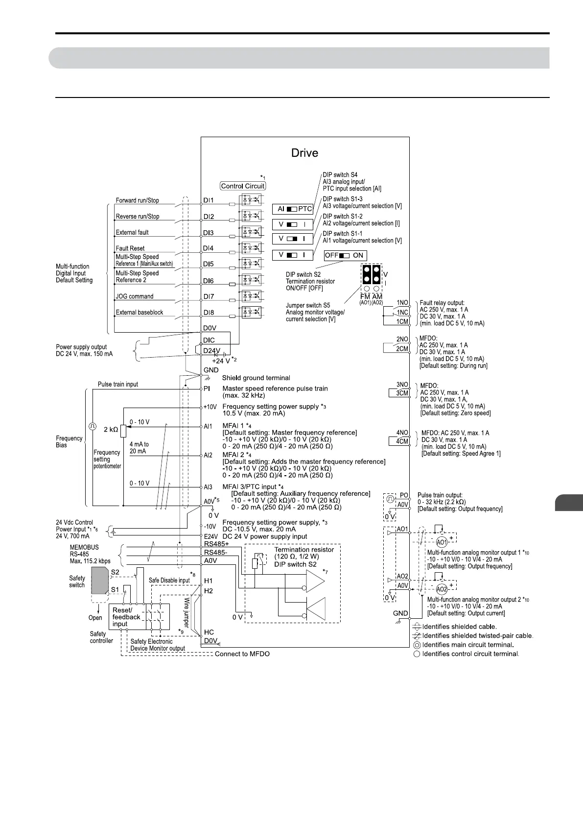 NOTICE: Do not close the circuit between terminals D24V and D0V. Failure to obey will cause damage to the drive.