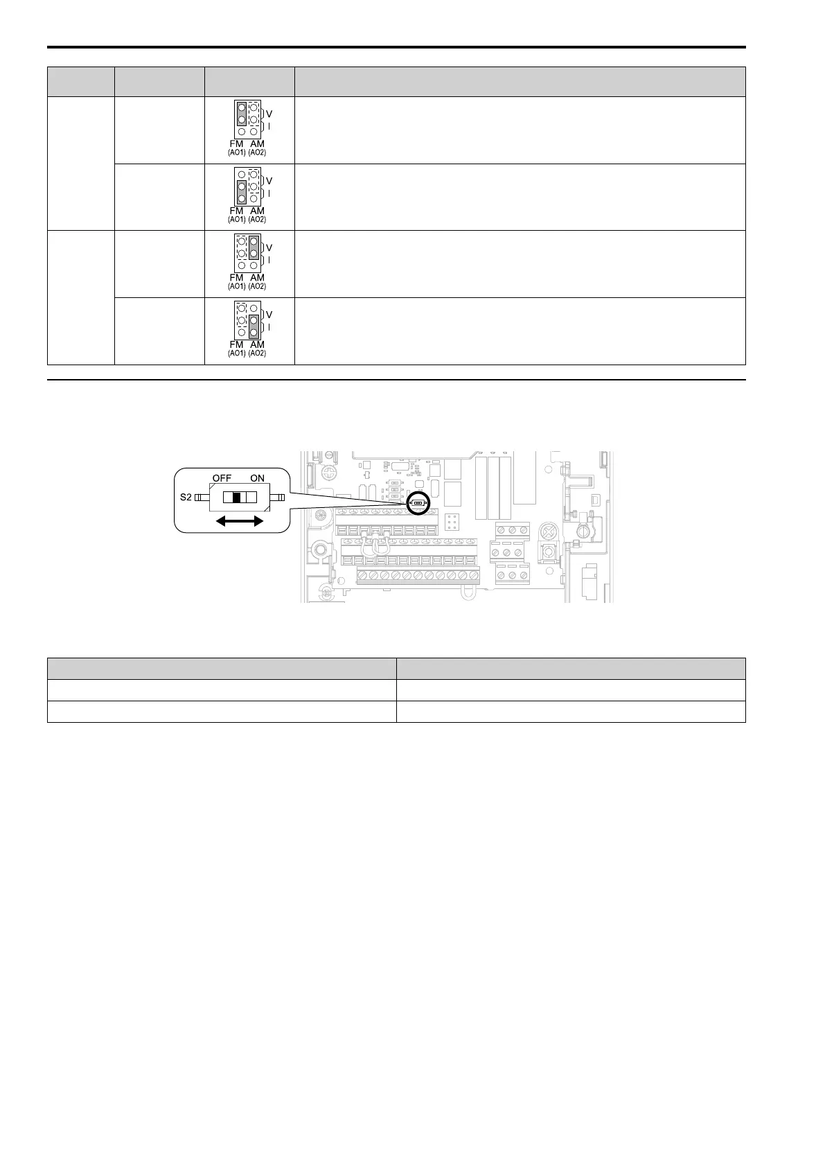 When the drive is the last slave in a Modbus communications, set DIP switch S2 to the ON position. This drive