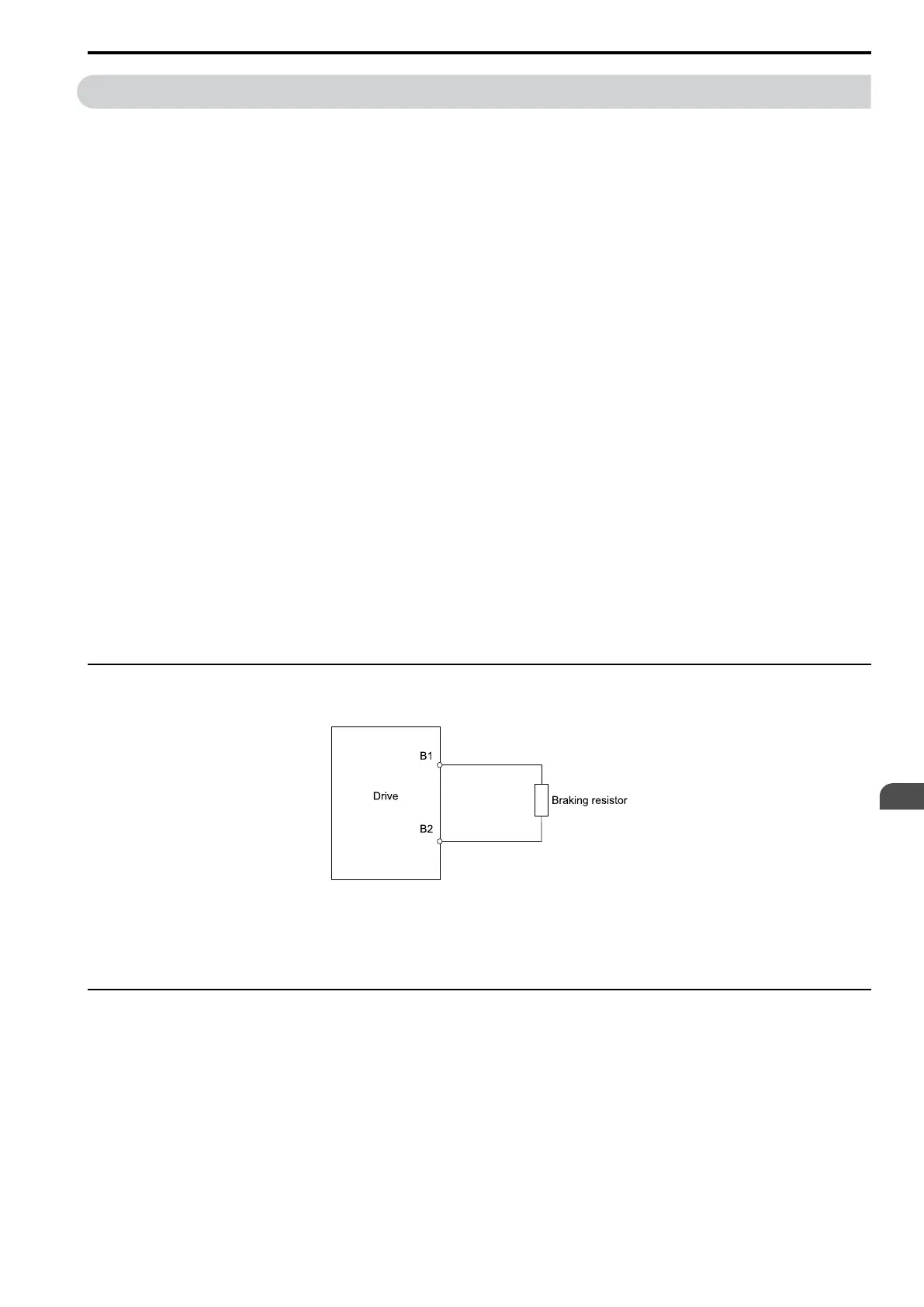 WARNING! Fire Hazard. The braking resistor connection terminals are B1 and B2. Do not connect braking resistors to other
