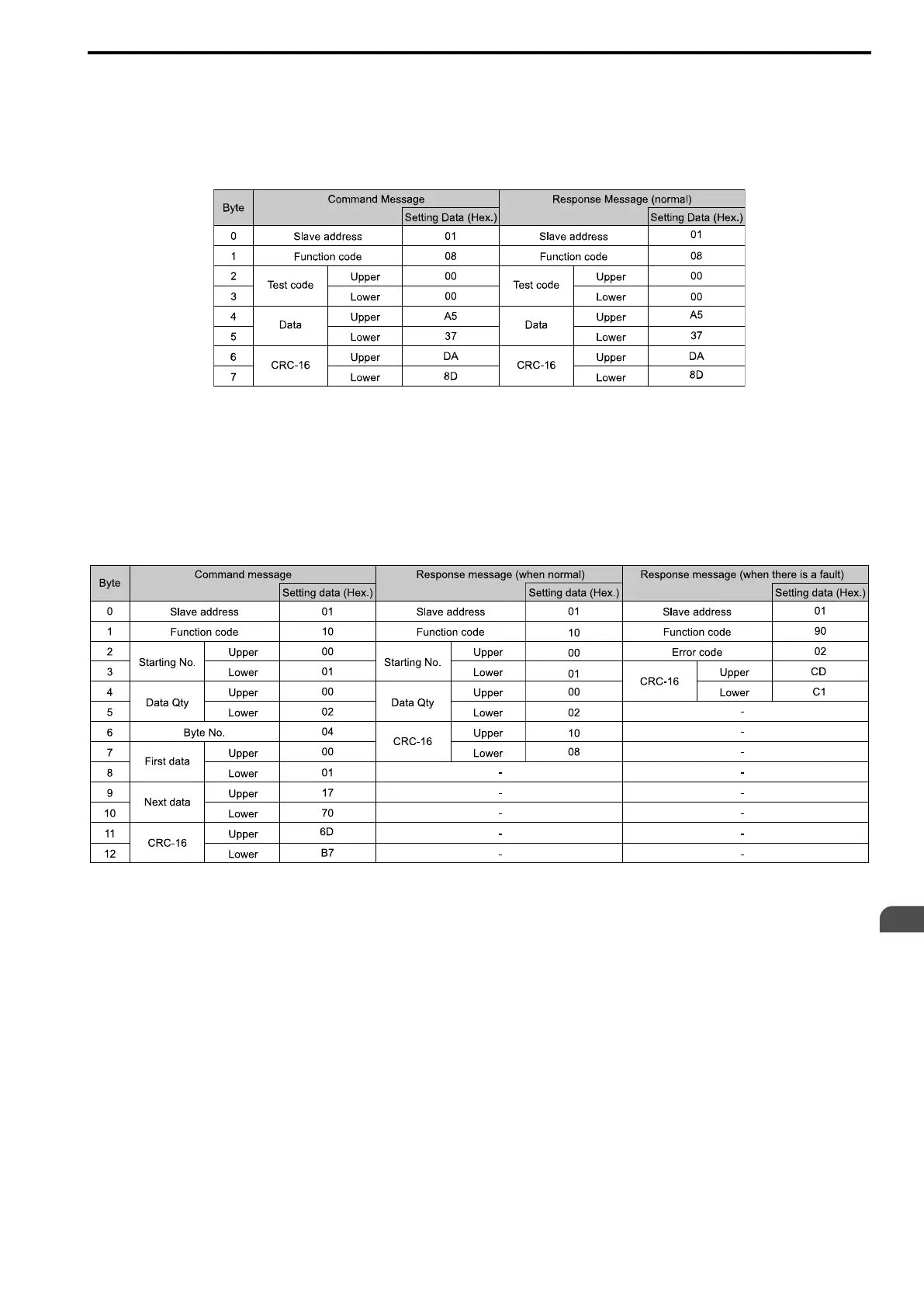 Table 6.6 shows example messages when you write to more than one holding register or when you read more than