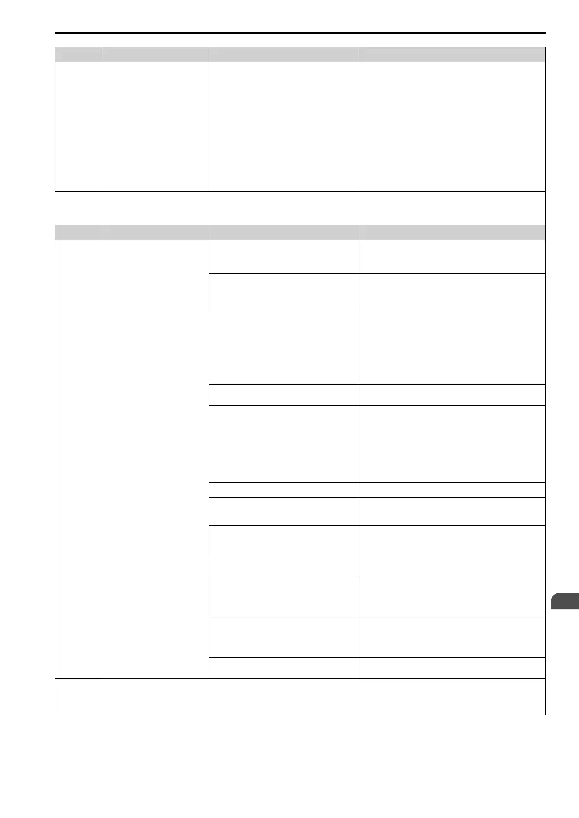 • The drive detects this fault if the electronic thermal protector of the drive started the motor overload protection.