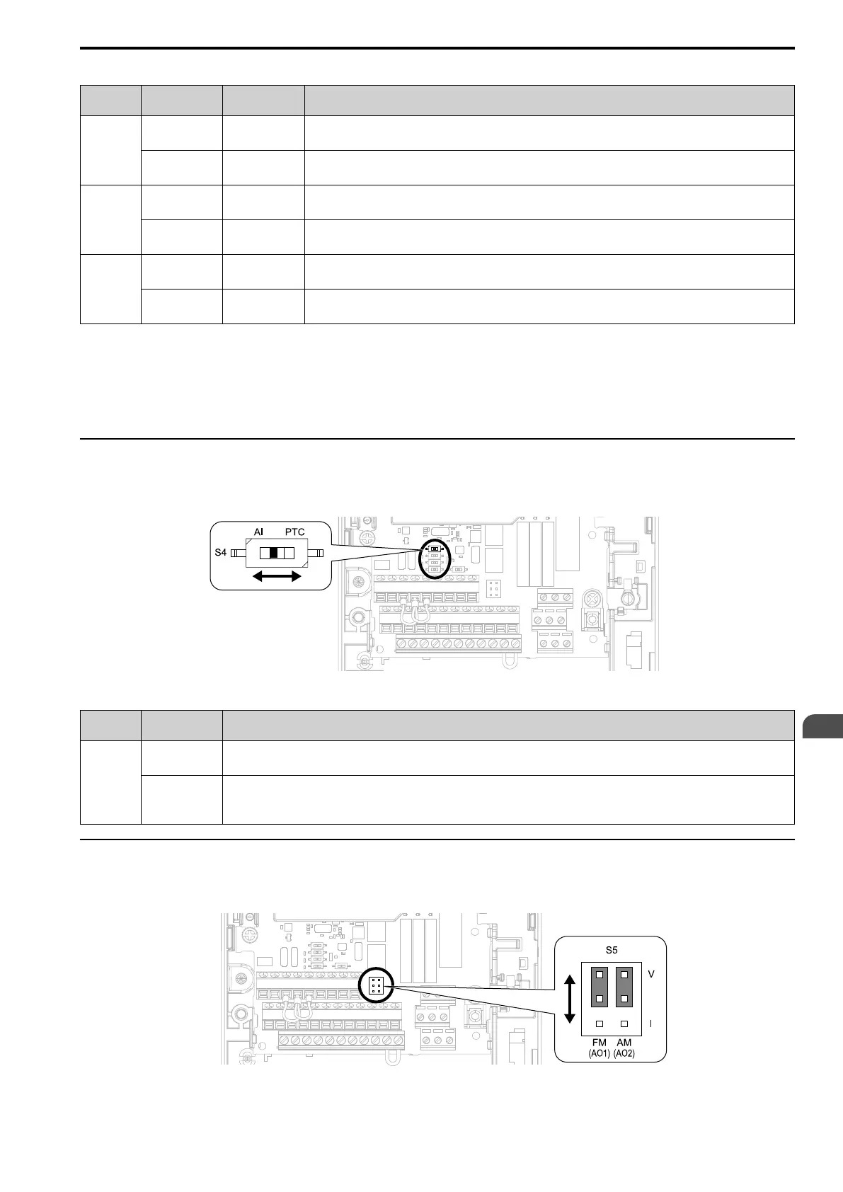 Set DIP switch S4 to AI to use terminal AI3 as an analog input (voltage/current) terminal. The default setting for DIP switch S4 is