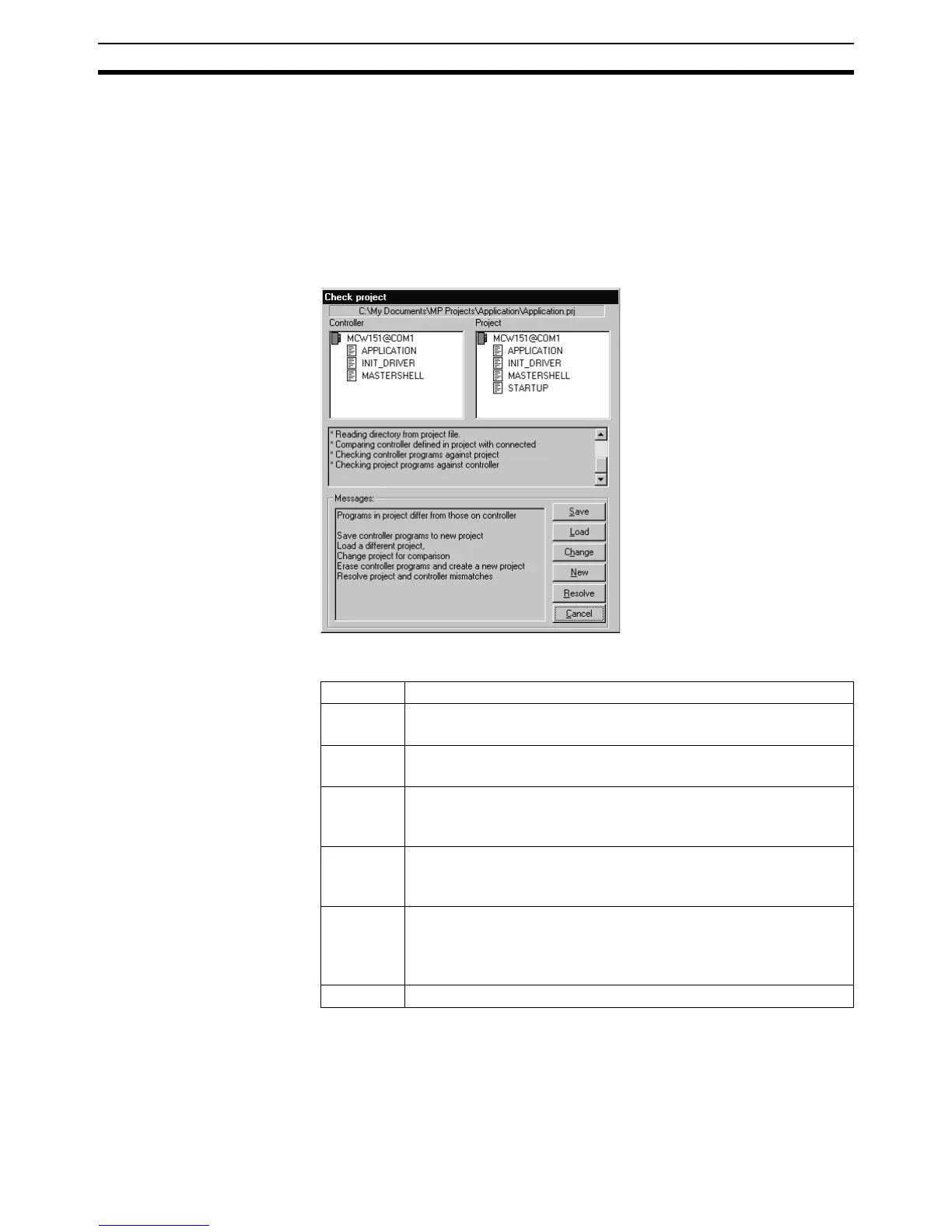 programs are compared to perform the check. The Check Project Window