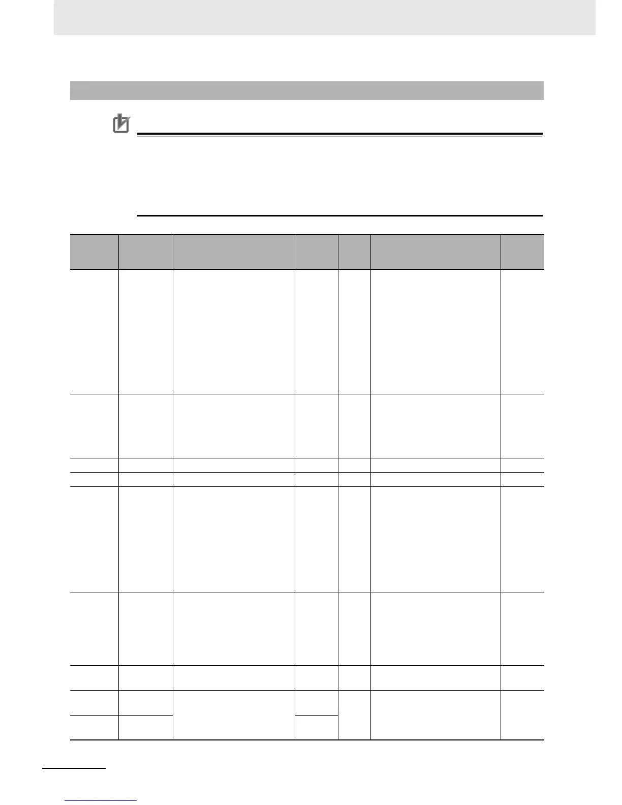 • The “Register No.” in the table header shows the resister number used inside the inverter.