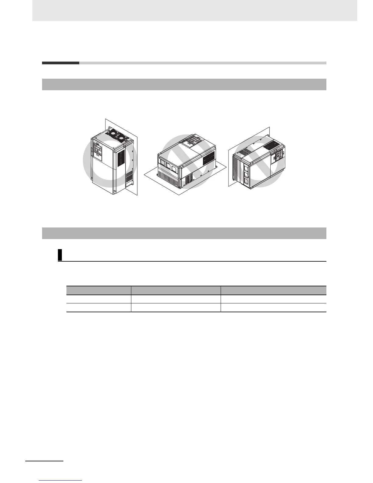 Mount the 3G3RX-V1 Series Inverter vertically on a wall with the product’s longer sides upright.