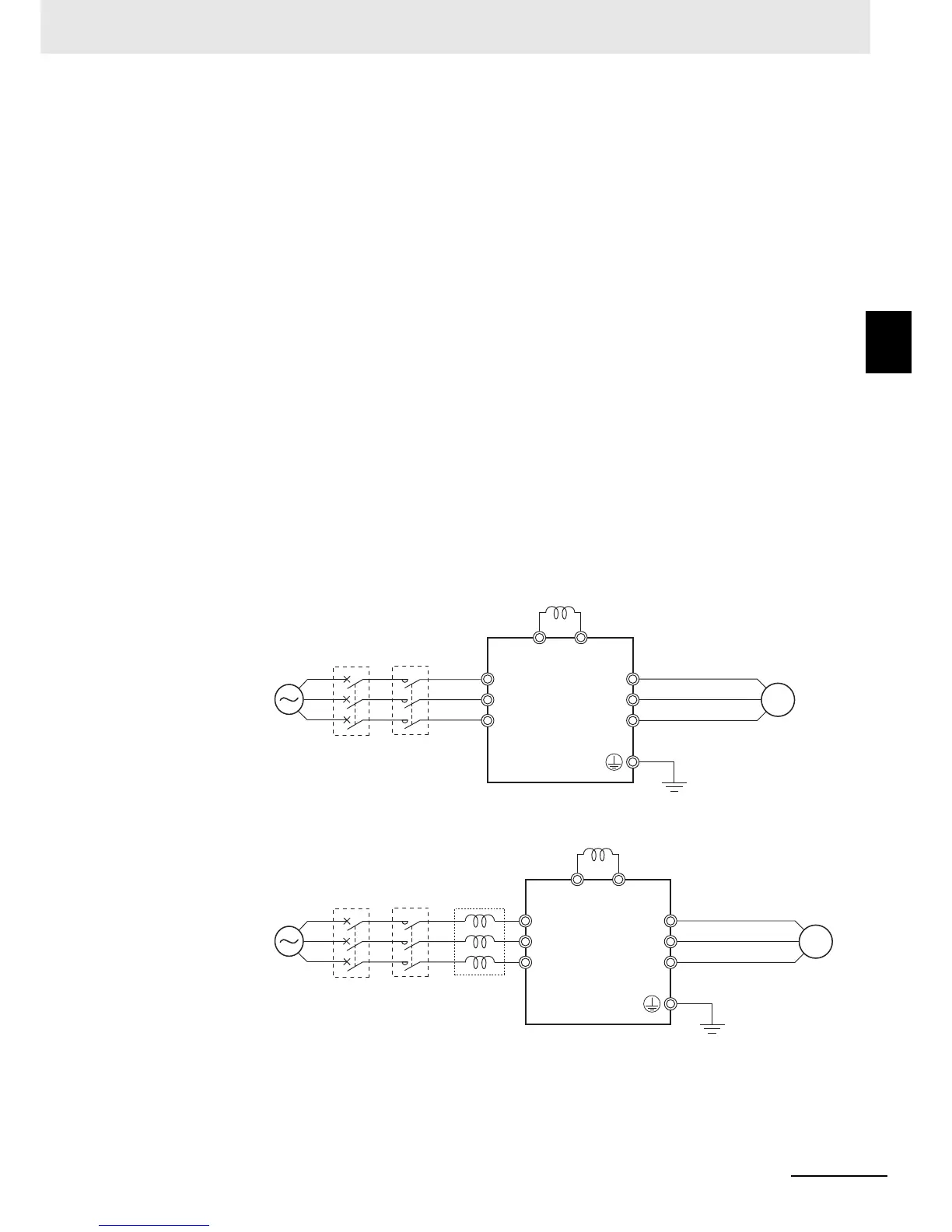 To suppress harmonic currents, use the DC (direct current) and AC (alternating current) reactors.