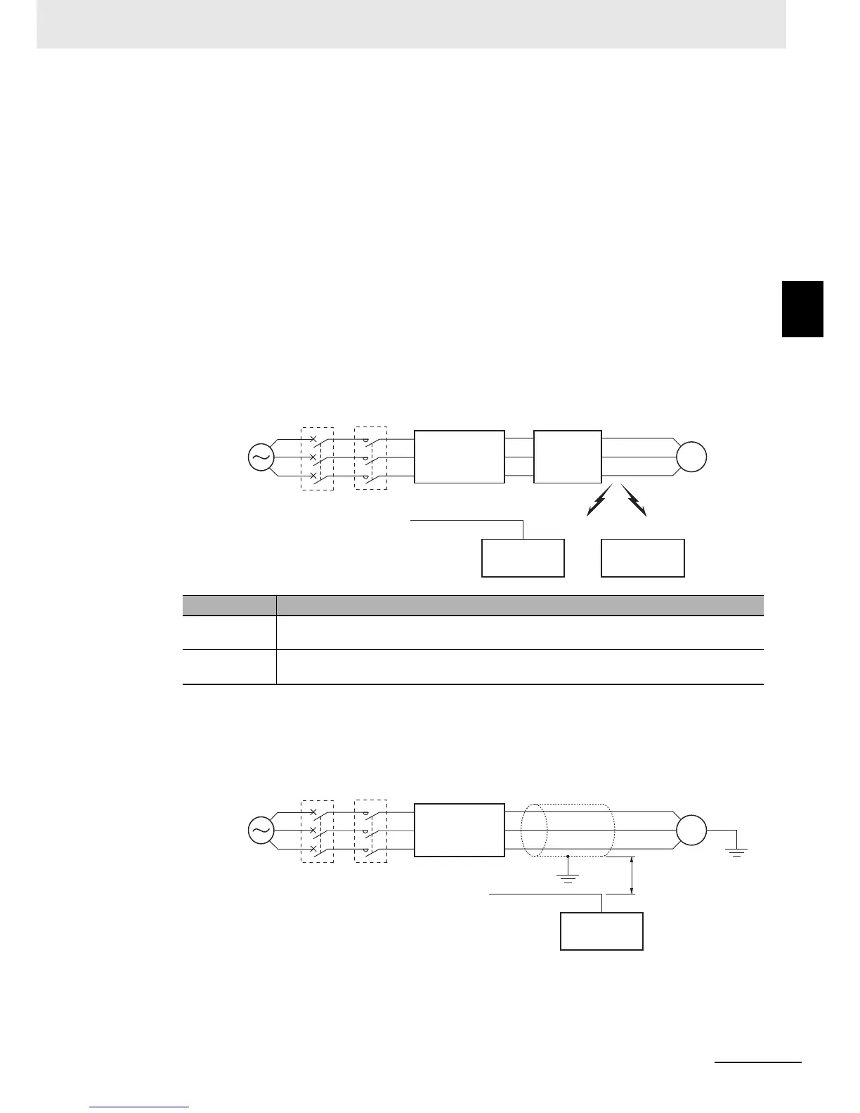 In addition to the noise filter described above, you can suppress the inductive noise produced on the