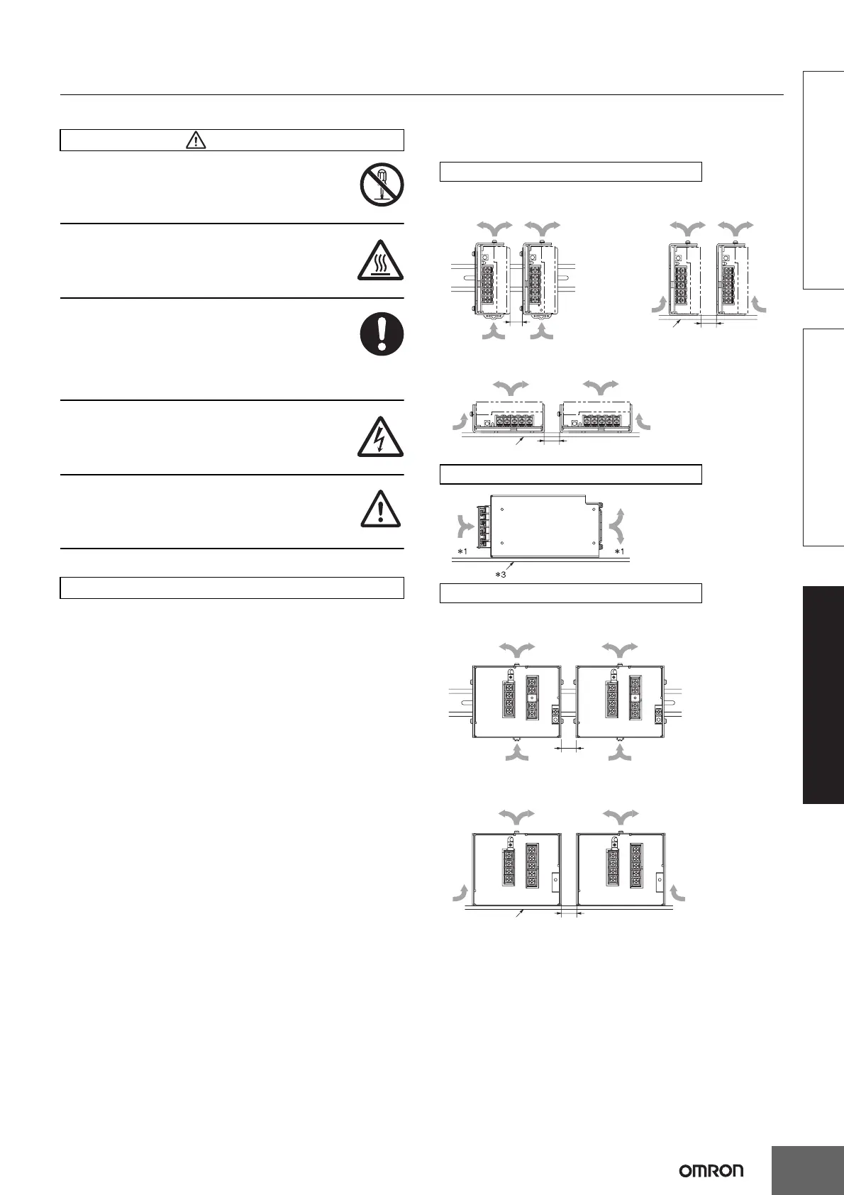 • When mounting two or more Power Supplies side-by-side, allow at