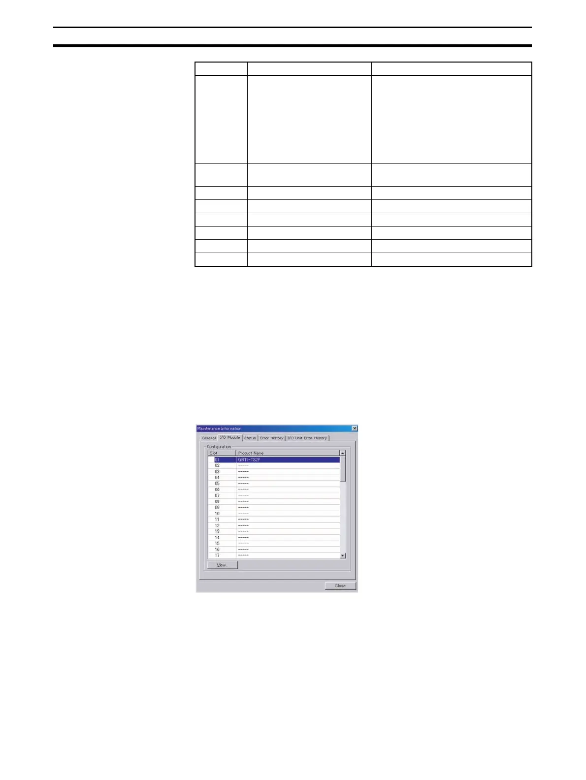 View Button to display the Maintenance Information Window of the I/O Unit.