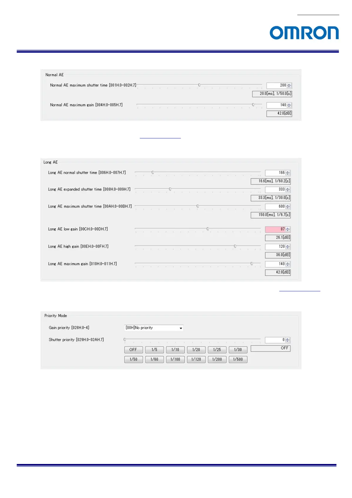 Gain or Fixed Shutter, this Priority Mode should be selected. When Normal AE or Long AE is selected, these