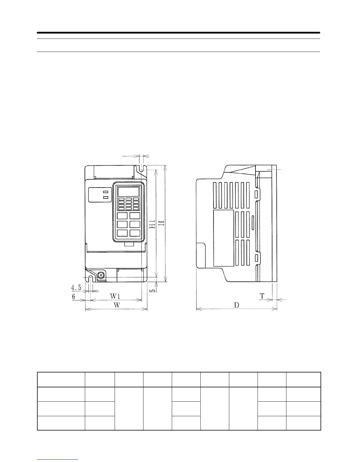 3G3EV model Output W H D W1 H1 T Weight