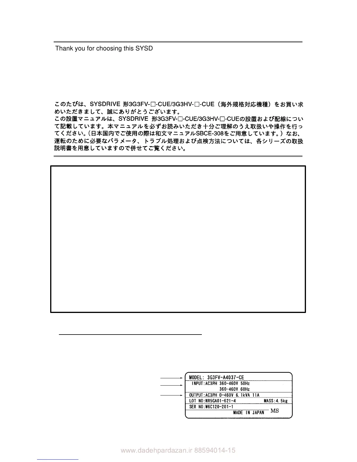 Thank you for choosing this SYSDRIVE 3G3FV-j-CUE/EF3HV-j-CUE (-CE) (Models
