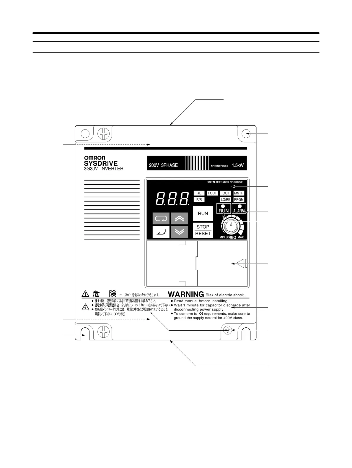 Note 1. The front cover functions as a terminal cover. The Digital Operator Unit cannot be removed.