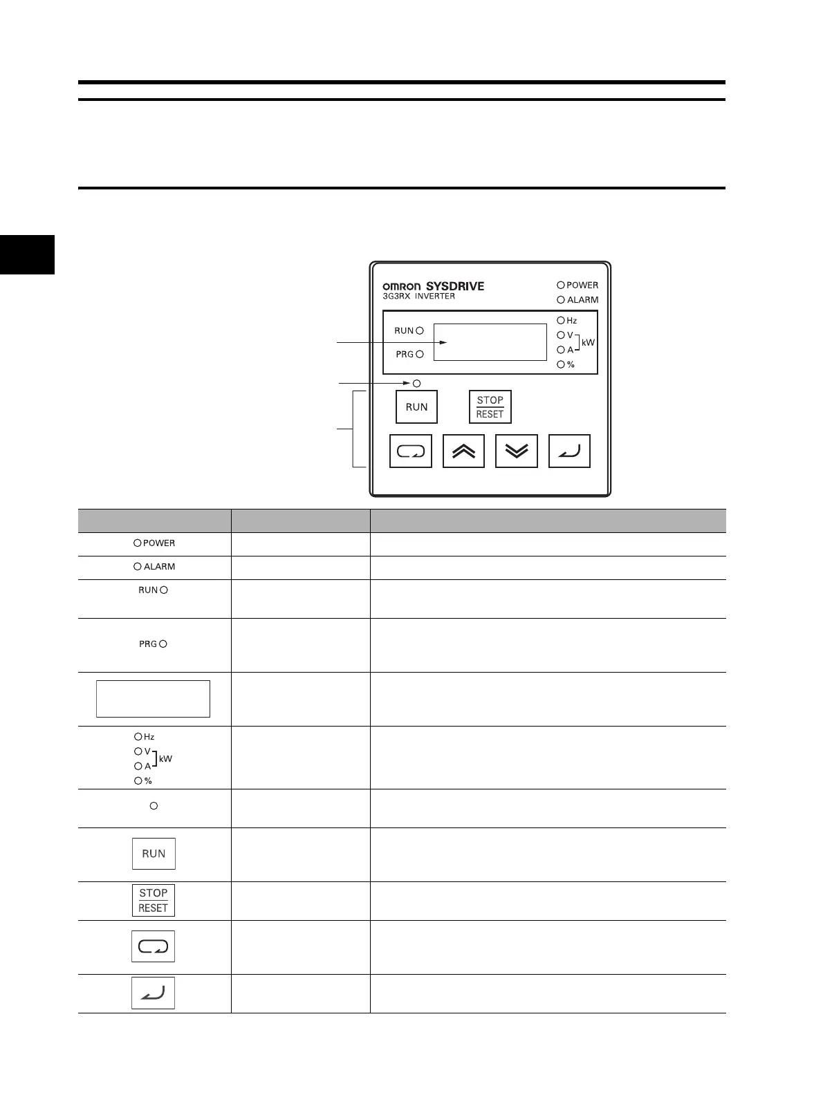 ALARM LED indicator Lit when an Inverter error occurs.