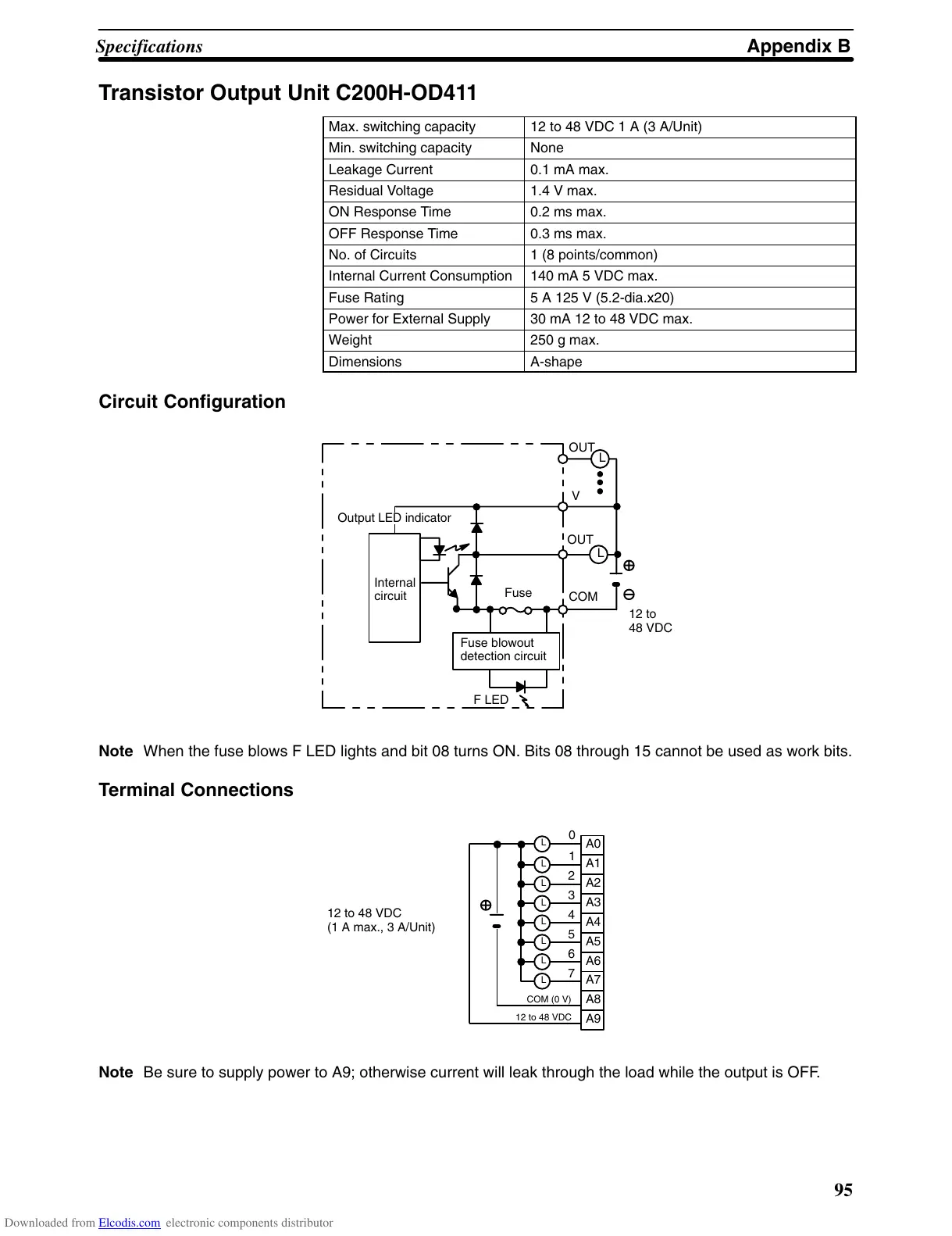 Note Be sure to supply power to A9; otherwise current will leak through the load while the output is OFF.