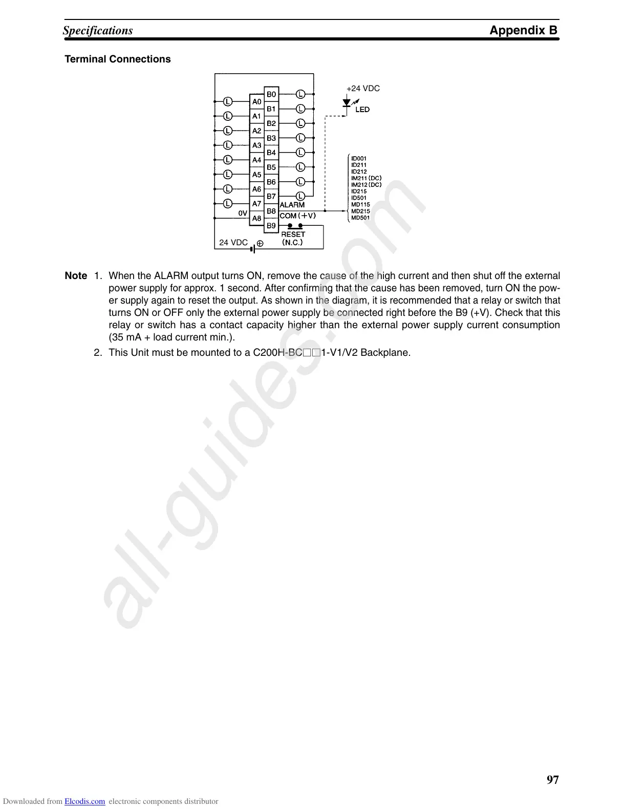 2. This Unit must be mounted to a C200H-BCjj1-V1/V2 Backplane.