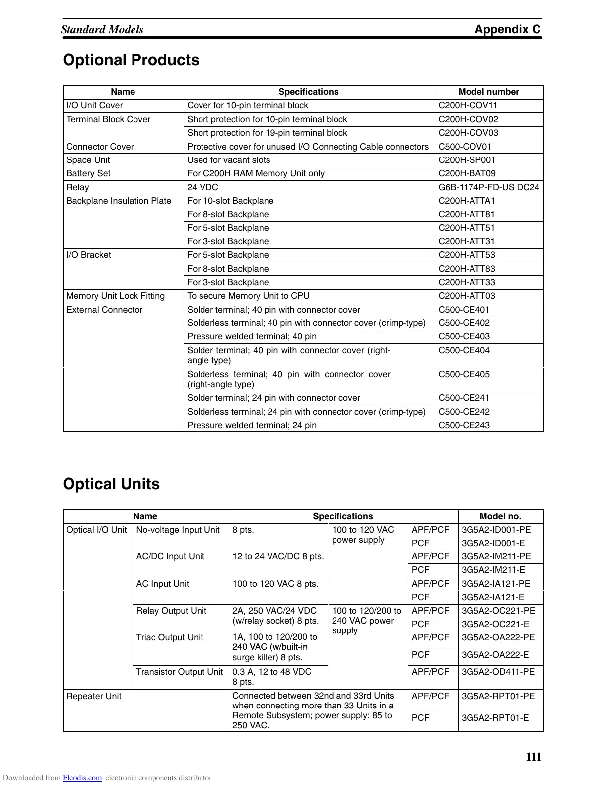 Space Unit Used for vacant slots C200H-SP001