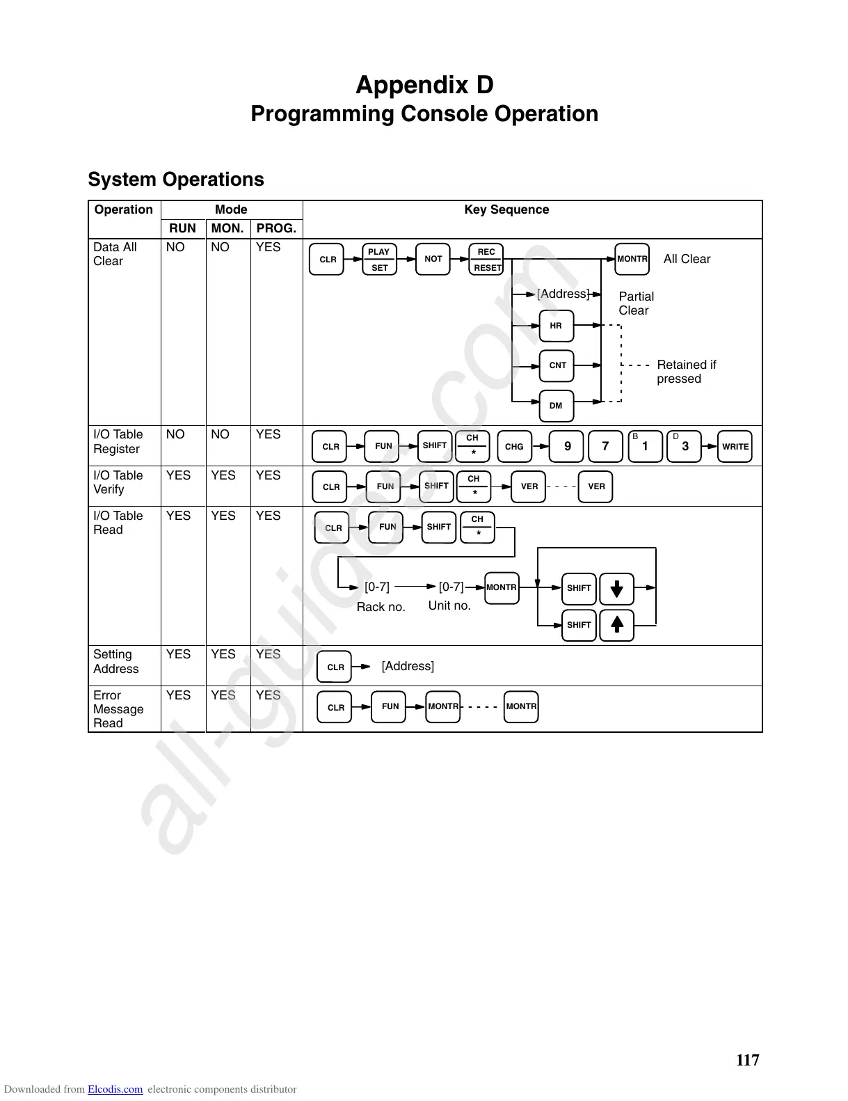 Operation Mode Key Sequence