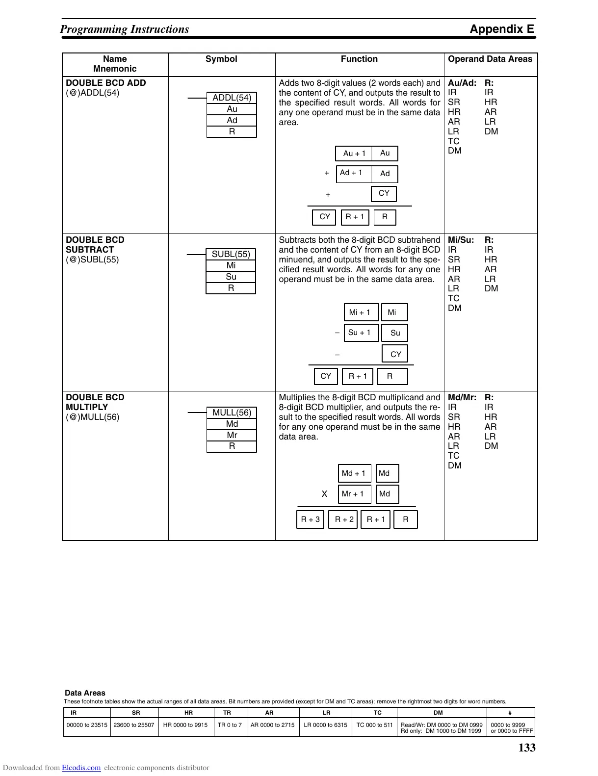 00000 to 23515 23600 to 25507 HR 0000 to 9915 TR 0 to 7 AR 0000 to 2715 LR 0000 to 6315 TC 000 to 511 Read/Wr: DM 0000 to DM 0999