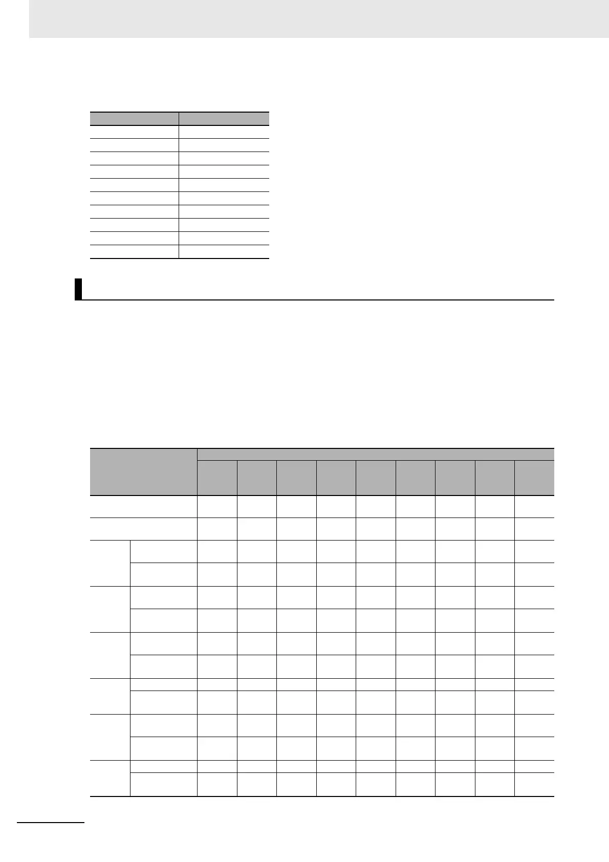 The following tables show when a second pulse control instruction can be started if a pulse control