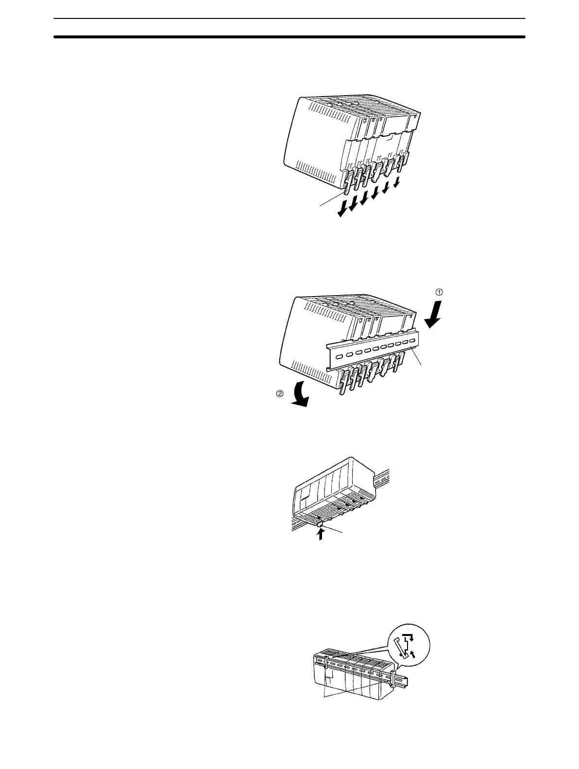 2. Release the pins on the backs of the CQM1 Units. These pins lock the PC to