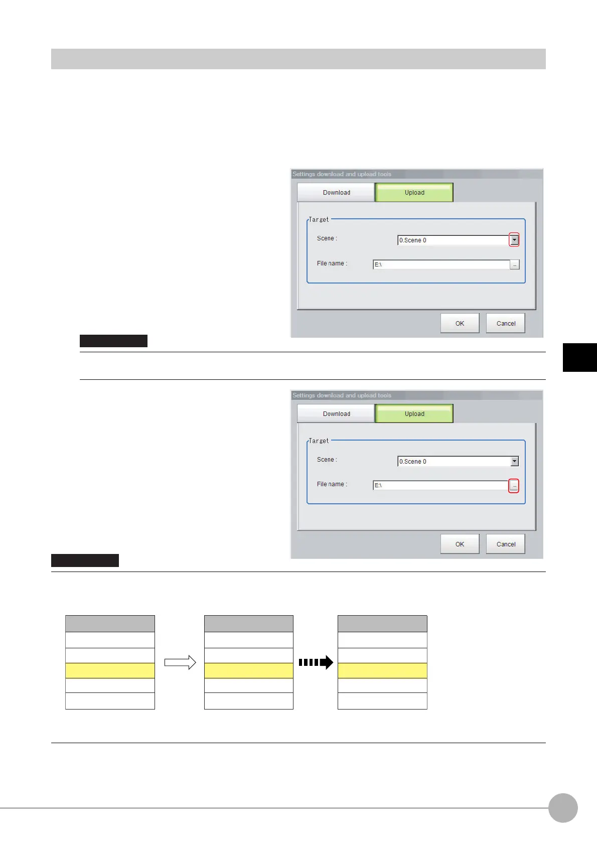 • If data with fewer units than the scene data to be loaded is uploaded, the parts that do not exist in the CSV file will not