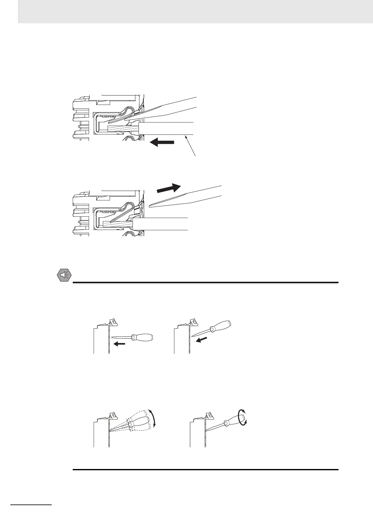 • Do not press the flat-blade screwdriver straight into the release hole. Doing so may break the