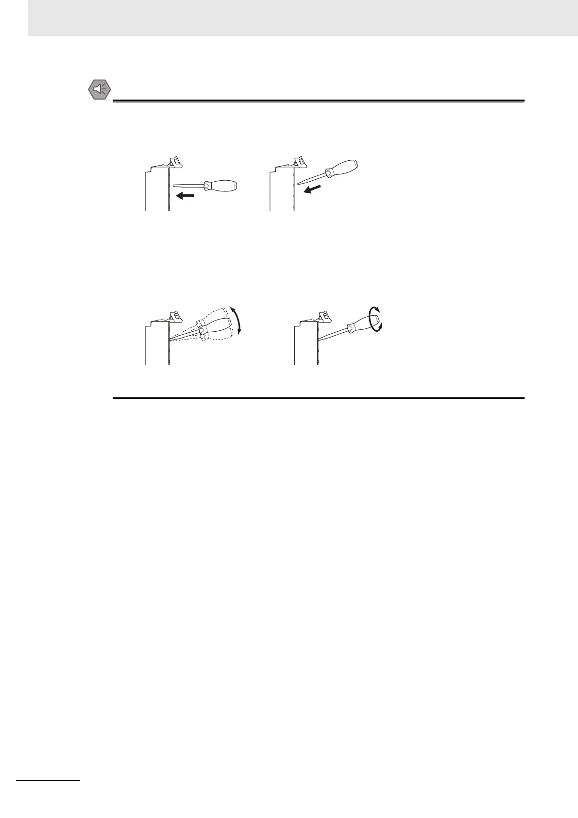 • Do not press the flat-blade screwdriver straight into the release hole. Doing so may break the