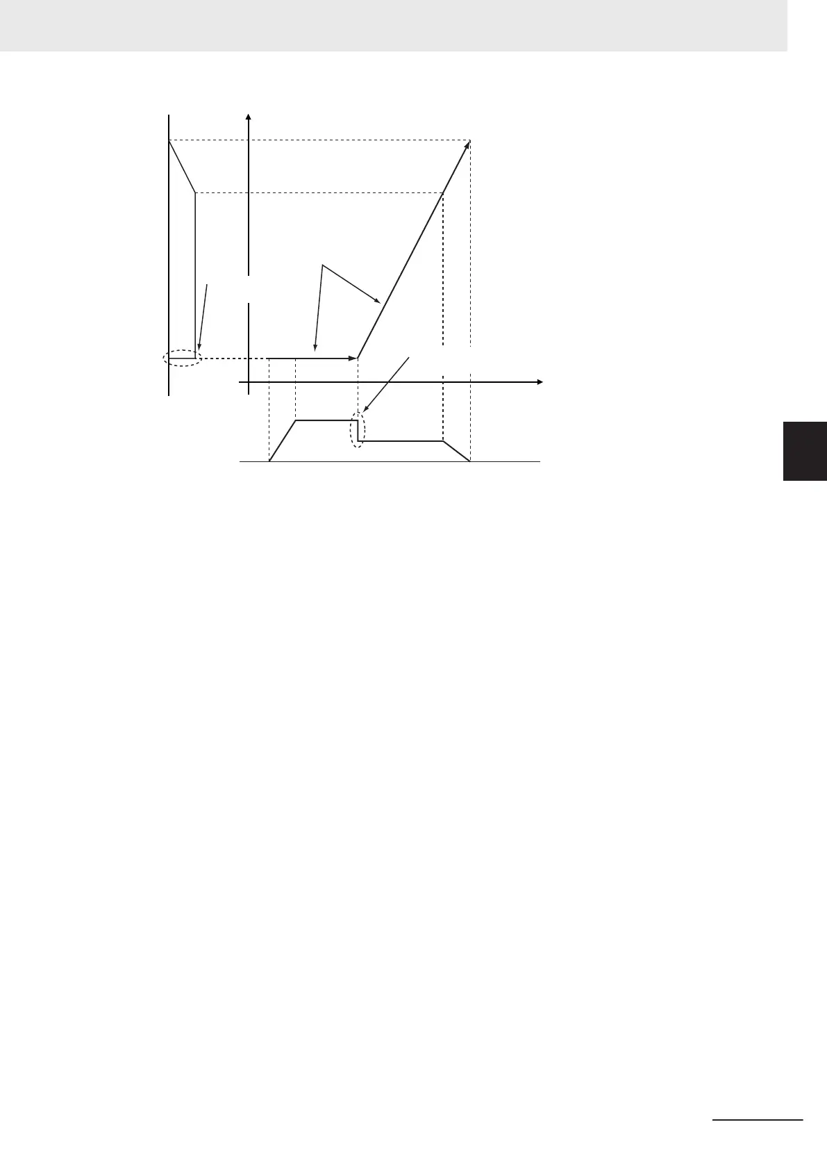 • To make the axes command velocities continuous, the deceleration range of the previous motion